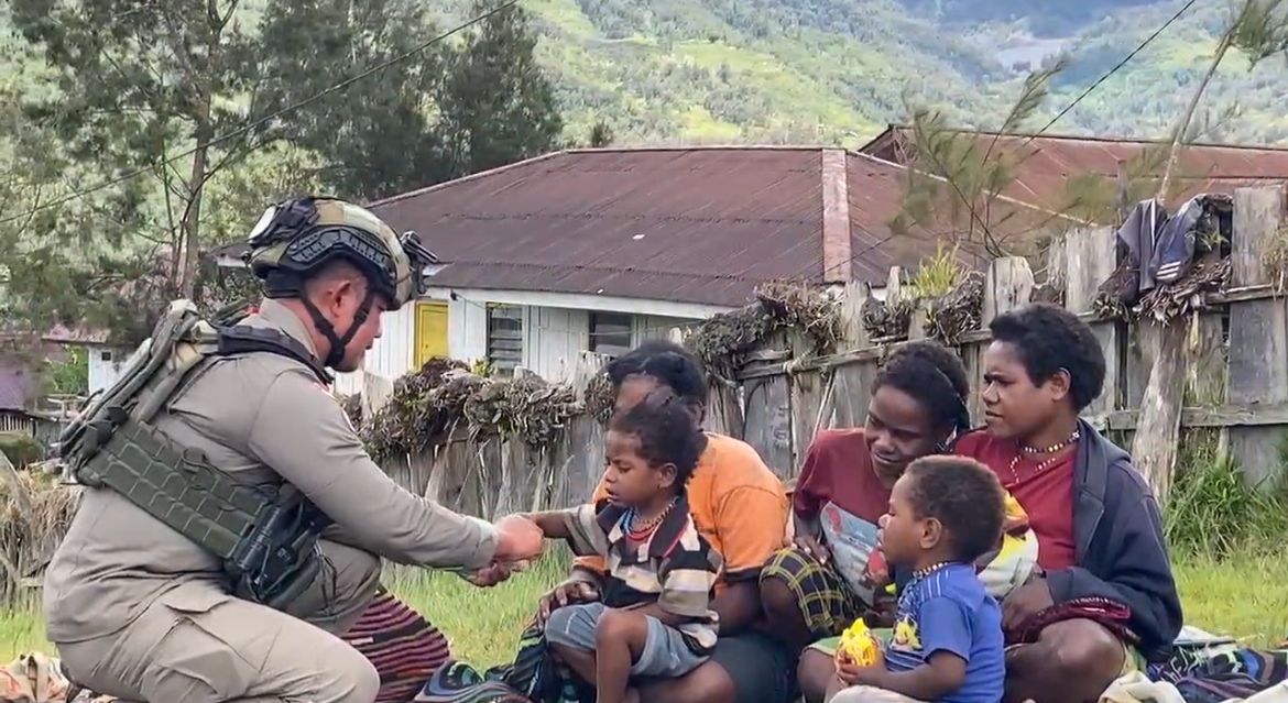 Sinak, Papua Tengah — Upaya membangun kedekatan dengan masyarakat terus dilakukan oleh Satgas Operasi Damai Cartenz-2025 melalui pendekatan humanis di wilayah penugasan. Salah satunya diwujudkan melalui kegiatan berbagi makanan ringan kepada warga yang dilaksanakan oleh personel Sektor Sinak, yakni Bharada Rosihan Yuwandi Pratama dan Bharada Ifaldi Syaiful Haq pada hari Rabu (17/12/2025).